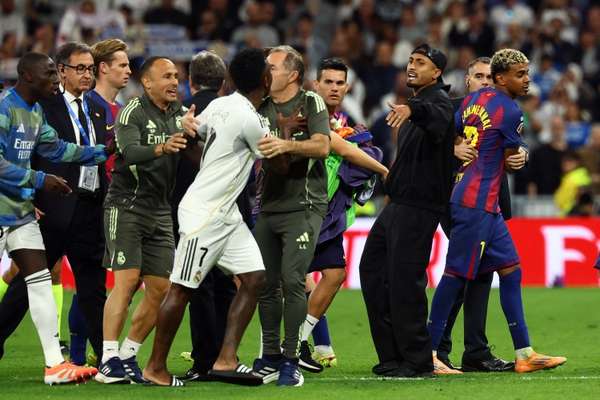 在刚刚结束的西甲第10轮国家德比中,皇家马德里主场2-1力克巴塞罗那,赛后双方球员爆发言语冲突。据现场记者透露,皇马后卫卡瓦哈尔在球员通道内向巴萨小将亚马尔表示:“若是继续喋喋不休,今日定要让你付出代价”,此言立即激起亚马尔的激烈回应。